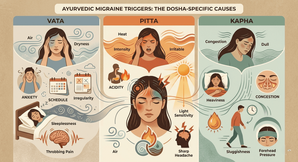 How Vata, Pitta, and Kapha Trigger Migraine Differently